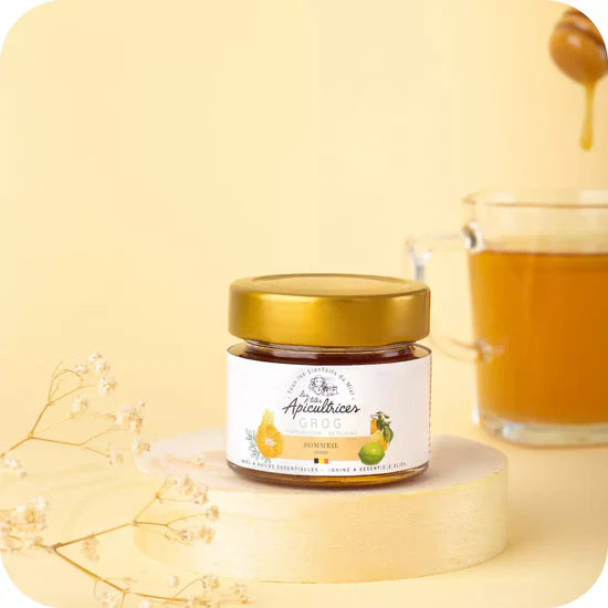 Le Grog Sommeil est une préparation à base de notre miel belge, pensée pour être diluée dans de l’eau chaude et savourée en boisson en soirée.